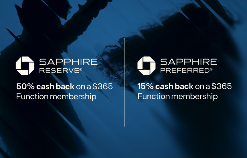 - Sapphire Reserve® Cardmembers can earn 50% cash back after spending $365 on a Function membership